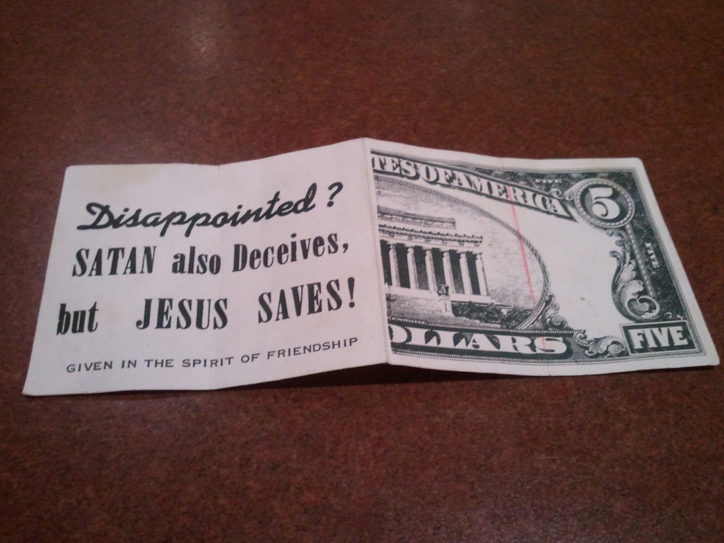 You are sitting at your table, and your server approaches. You order drinks and food. When the food arrives, something is wrong with your order. You tell the server to take it back and get it right. After the server leaves, you whisper to your spouse, “There goes her tip.” The conversation, then, gets enthralling at your table. The server asks, “How is everything?” You quickly respond, “Great!” Then, you go back to your conversation. Before you realize it, there is a slip of paper in front of you: the bill. You quickly pay the amount, then before you leave (in order to fulfill your Christian duty) you place a tract on the table with a meager tip or even no tip.